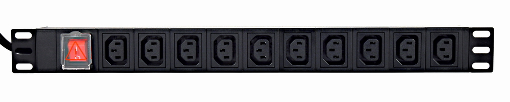 19” stekkerdoos met schakelaar (PDU), 10-voudig C13, 1U, 16A